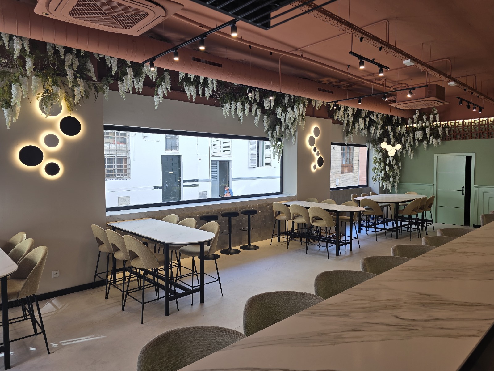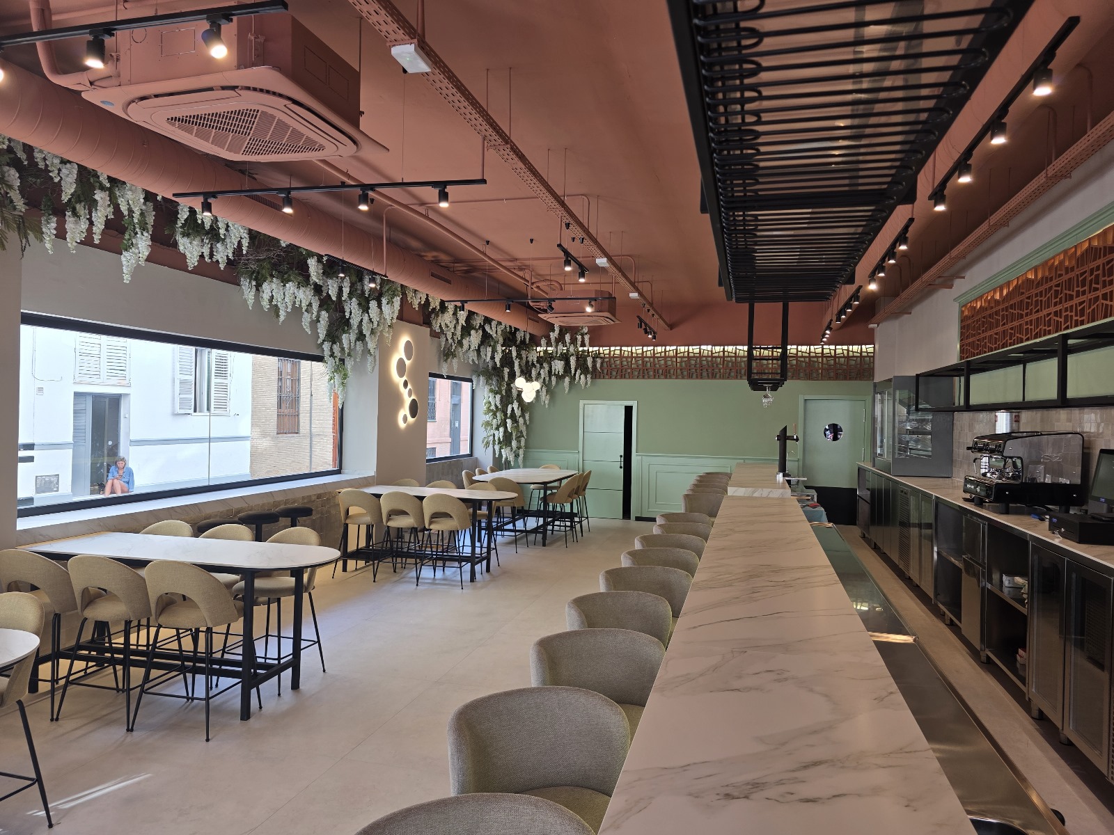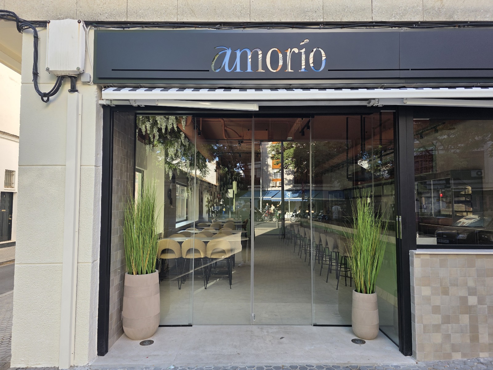 Reforma integral realizada para implantación de Restaurante Amorío en Sevilla Centro. Hemos realizado la obra civil con demolición incluida, fachada y rótulos e instalaciones totalmente nuevas, incluidas la de climatización , electricidad y cocina en fechas complicadas al ser apertura en septiembre.